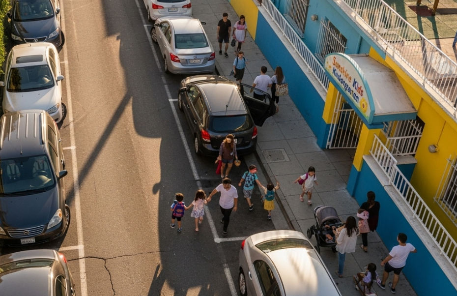 We also have an impact on traffic jams. If less time is spent picking up a child, then fewer cars will accumulate near the kindergarten at the same time.